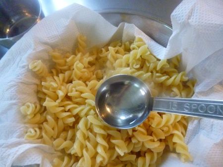 茹でてペーパーで水分をふいたフッリジにサラダオイルを混ぜておく。