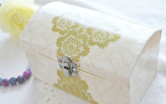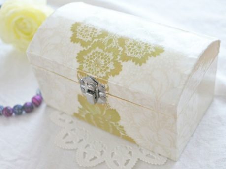 ダイソーのペーパーBOXをデコパージュしてジュエリーBOXに いつもより高見えするデコパージュです。