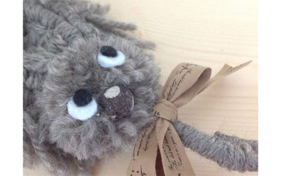 耳の部分にも布を縫いつけて、顔の下にリボンを結べば完成です。