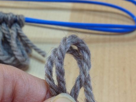 ⑥別の毛糸で結びます