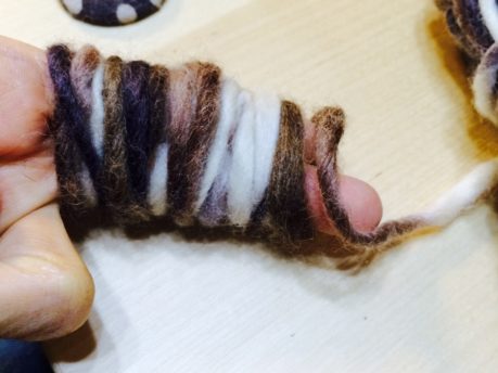 毛糸を8~15回くらい指に巻きます(毛糸ポンポンを作る感じ)。