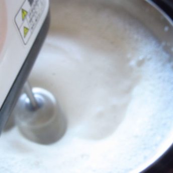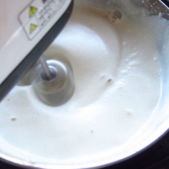 泡が細かくなってきたら再度きび砂糖を1/3加えます。