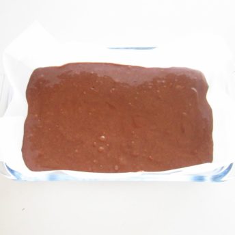 耐熱皿にオーブンシートを敷き、生地を入れます。