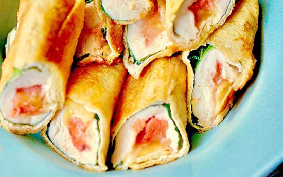 ヘルシー! 冷めてもおいしい☆ 油揚げで低カロリー「ささ身明太子チーズ春巻き」