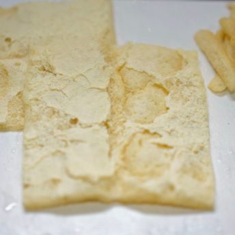 ・油揚げは5枚入りで売っているものを使いました。一般的な長方形のタイプです。春巻きの皮より、ボリューミーに仕上がるので5枚でも満足でした。