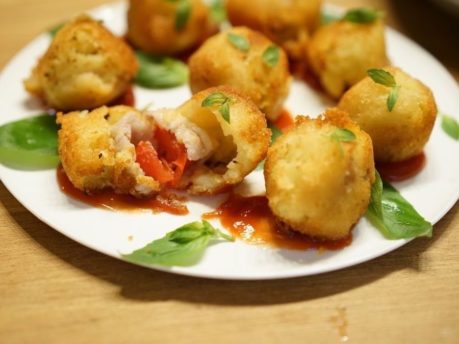 カロリーひかえめ♡ イタリアンコロッケは豚トマト入り☆(レシピ&盛りつけ)