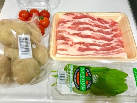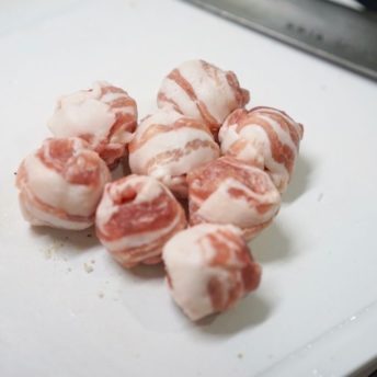 ・豚バラ肉は薄切りを使用しました。1パック6枚入っていましたが、実際に使用したのは4枚を半分の長さにカットしたもの8枚です。