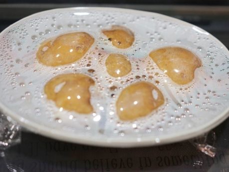 軽く色がついてくるまで、あまりさわらず、少し色づいたら少し回転させくらいで動かしてください。