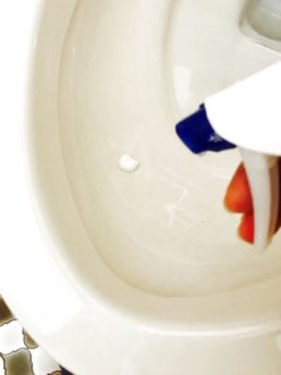 トイレ用洗剤と歯磨き粉を混ぜます。