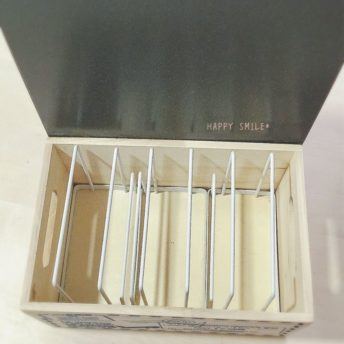 ウッドボックスの中に、まな板ラックを3個、接着剤でくっつけます。