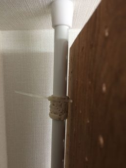 つっぱり棒はあとで微調整するのでゆるめに設置してください。
