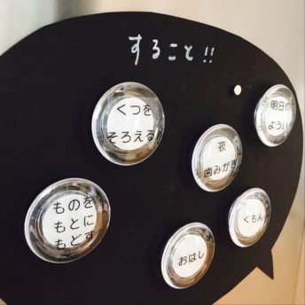 子どもにしてほしいことを、マグネットに書いて、「すること」と「できた」を見える化。