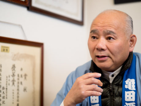 ぼくを案内してくれたのは、この蔵の九代目当主、亀田雄司さん(六〇歳)だった。