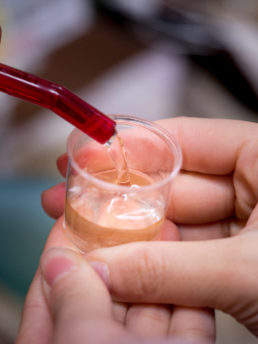 「大吟醸にはね、いわゆる『香り吟醸』と『味吟醸』があるんです。たとえば私がモンドセレクションに出したのは、外国人にウケがいい香りの華やかな酒ですけど、一方の幻の米で造った『愛山』は、香りは少ないけれど味には素晴らしい深みがあるんです。はい、どうぞ飲み比べてみてください」