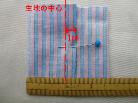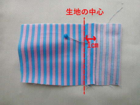 反対側は生地の中心より1㎝重なるように折ります(約6.5㎝になります)。