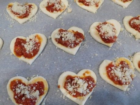 バレンタインにピリッと辛口ハート型ピッツェッタ♪