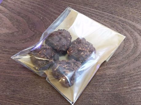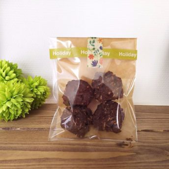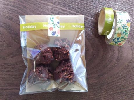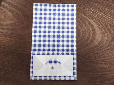 紙を袋に入れ、クッキーを入れて後ろ側に折ります。
