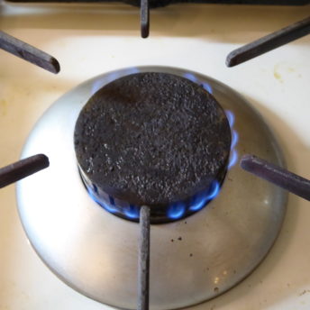ひっくり返さずに片面焼きで、3分強焼きます(火力によって時間は違うと思うので様子を見ながら焼いてください)。