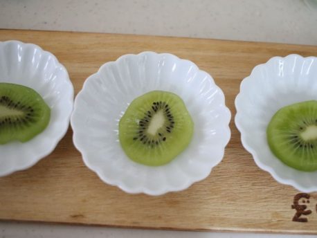 輪切りにしたキウイをお皿に置きます。