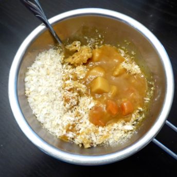 温めたカレーとパン粉を混ぜます。