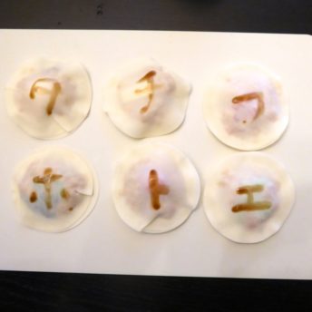 皮の輪郭に水をつけます。 (ここもお手伝いポイントです☆)