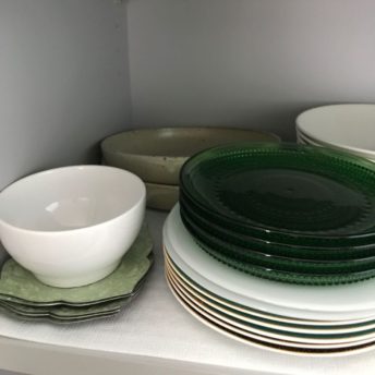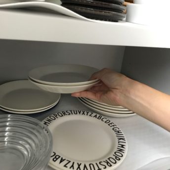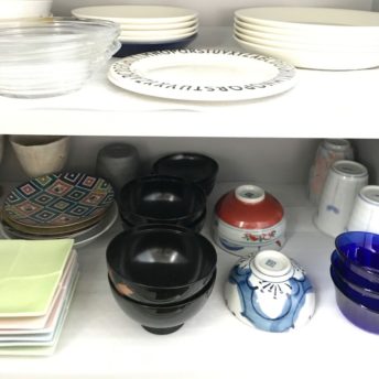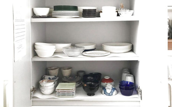 奥の食器を出すときに、いちいち手前の食器を動かさなくてもいいように、食器を重ねすぎないようにしています。
