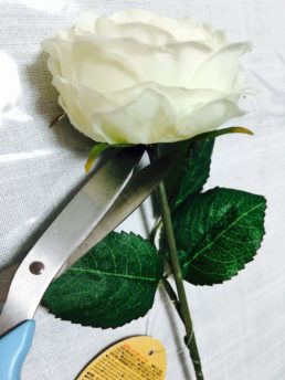 ①造花の茎をカットします