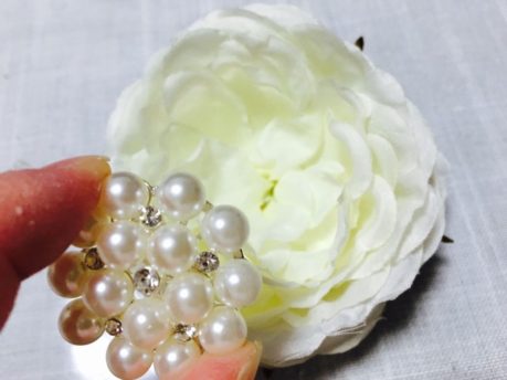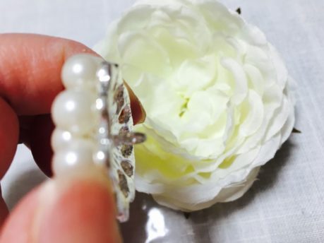 中央にしっかり花びらが固まって開かないタイプの造花にはつけられないのでご注意ください。