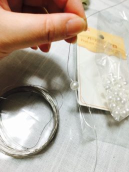 ⑤ワイヤーにパール調ビーズを通していきます