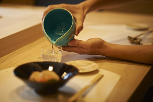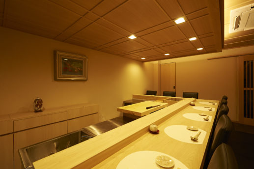 店内は上品で高級感漂う内装。カウンターには、おすし屋さんによくある魚のねたケースは置かれておらず、店主の手元がそのまま見えるつくりになっています。