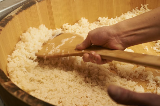 水分量を調節して炊き上げるこだわりのシャリは、新潟産のコシヒカリを中心に5種類のお米をブレンドし、食感をよくするためにもち米も加えています。さらに、3年間杉の樽の中で熟成させた天然の赤酢を使用しているので、食感も香りも他では味わえない極上のシャリが楽しめます。