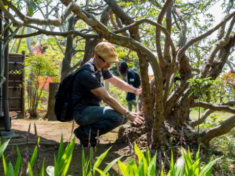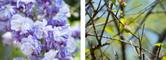 ぼくが訪れた日には、大ぶりな鉢に植えられた藤の花がずらりと並べられていて、観光客たちの目を楽しませていた。紫と白の花々の周りには無数のクマバチが蜜を吸いに集まっていて、ぶーん、ぶーん、と豪快な羽音を立てて飛び回っていた。