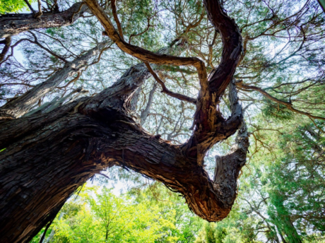 ぼくは威厳たっぷりの樹々たちを見上げながら、「気持ちのいいところだなぁ」とつぶやき、ゆったりと深呼吸をひとつ。