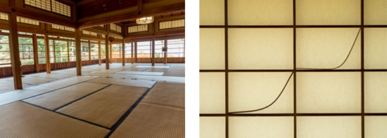 とある小さめの部屋を見ていたとき、ふと四隅にリング状の金具がついていることに気がついた。しかも、それぞれ上下に二つずつある。蚊帳でも釣っていたのかな? と思ったけれど、実際のところは、何に使われた金具なのかは不明だそうだ。