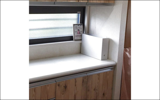 以前は、書類を収納してある場所に持っていったり、そのままキッチンに置いておくこともありましたが、汚れても困るし、運ぶのも手間なので、キッチンに一時置きスペースを作ることにしました。