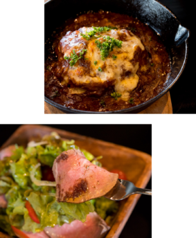 この日、チーム「やぱ千葉」(この連載「やっぱり千葉が好き!」の取材チーム)の四人がオーダーしたのは、それぞれ違ったランチメニューだった。ぼくは「極太ペンネ(リガトーニ)のグラタン」に即決。他の三人は「ローストビーフの山盛りサラダ」「ポルケッタランチ」「牛すじ煮込みのスキレット焼き」を注文し、全員が「ドリンク・フレンチトーストセット」を付けた。