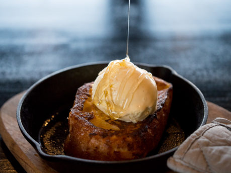 熱々の分厚いフレンチトーストの上に冷たいバニラアイスがのっていて、さらに、たっぷりのハチミツ……。ナイフで切って口に入れると、ローズマリーの香りがふんわりと鼻に抜けていくのである。これは小林さんが庭で育てているというハーブだ。