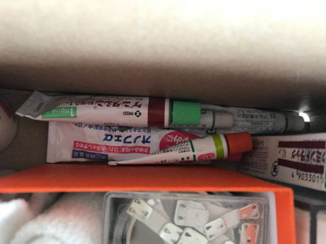 市販や病院で処方された軟膏類、ちっちゃいので、薬箱の中であちこちに埋もれがち。