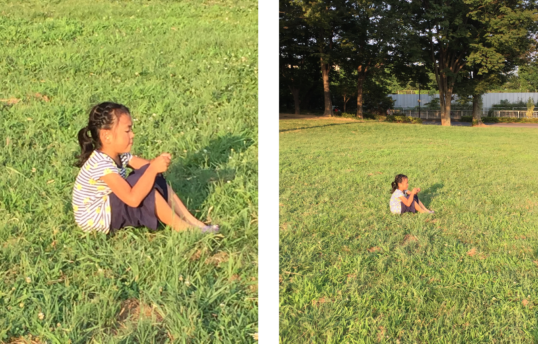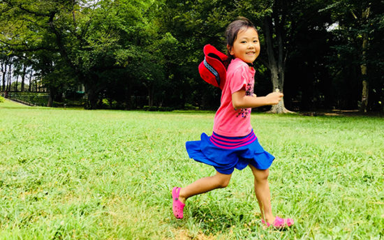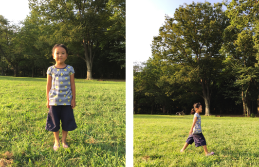 先ほども説明したように、スマホカメラはズームを使わず人物に近づいて撮るのが基本。でもそうするといつも人物中心の同じような写真に。ズームは使わずに、ときには背景を生かした「引き」の画像を。子どもの姿は小さくなっても、風景とマッチしてかえって動きが生き生きと見えることがあります。
