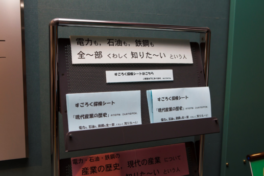 子どもたちに大人気のすごろく探検シート。なぞ解きの答えをフロアで探していくうちに、楽しみながら産業の歴史を知ることができます。