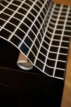 少しわかりにくいですが、リメイクシートの端を貼ったら片手でゆっくり表面の空気を抜きながら貼っていき、もう片方の手で裏紙を少しずつ引っぱるようにすると上手に貼れます。私はこの方法がいちばん楽に貼れました。