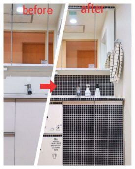 100円ショップで大人気のリメイクシートで☆ 賃貸の洗面台を400円!! “簡単セルフリノベ”