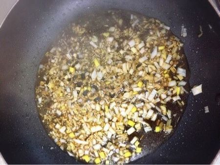 ①のねぎ、にんにく、しょうがと★をフライパンに入れ、沸騰させます。