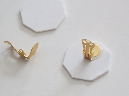 乾いたら裏にイヤリングパーツを接着して完成! イヤリングパーツは接着部分の表面積が大きめのものがおすすめです。