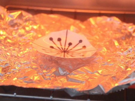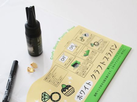 くしゃくしゃにしたアルミホイルの上にプラ板を乗せ、トースターで焼きます。目安は1分程度です。縮まなくなれば焼きあがりです。熱いうちにプレス板で平らにしてください。