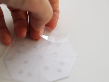 下描きをプラ板にテープで貼り、固定。裏返して油性ペンでなぞります。
