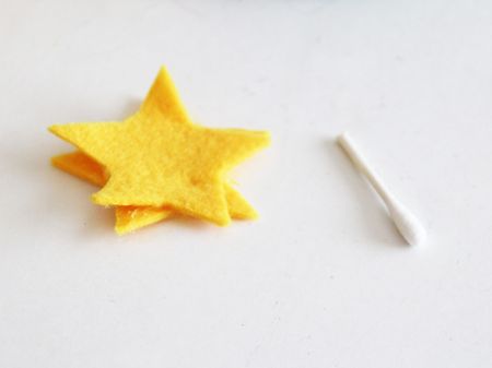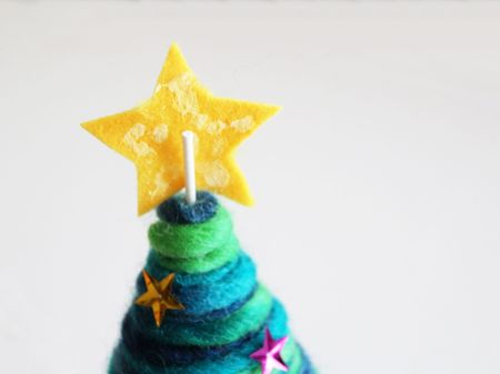 ツリーの上に星を飾ります。今回は星型に切ったフェルト2枚と半分に切った綿棒を使用しました。ポンポンやフェザーなどでも可愛いと思います♪