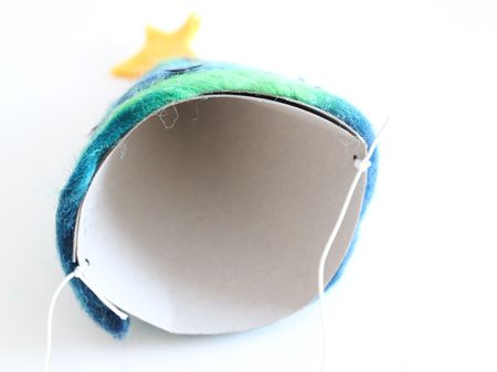土台の内側から綿棒をさし込み出てきた棒にボンドなどで星をくっつけたら完成です。