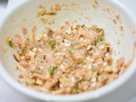 ・鶏ひき肉はむね肉を使いました。もも肉よりむね肉のほうが脂分が少なく、扱いやすいです。