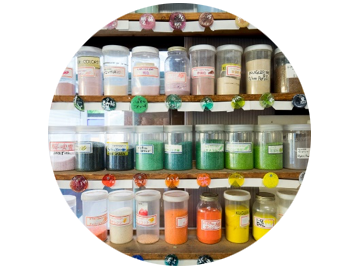 体験で作れるガラス作品の種類は想像以上に多い――、というか、「初心者には難しすぎる形状であったり、極端に大きかったりしなければ、まあだいたいオーケーですよ」という鈴木さんのユルさが、なんともぼく好みである。ようするに、色、形、模様に至るまで、ほぼ自由に選んで作らせてもらえるのだ。